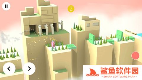 当然,在奔向大海的途中会有很多障碍和陷阱,例如墙壁、沟壑等,我们要通过点击屏幕左侧的红色按钮来隐藏或者显示这些障碍。