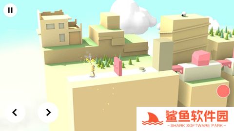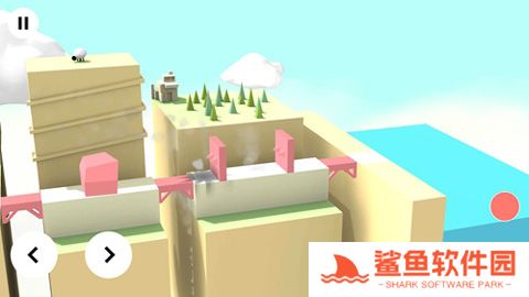 当出现障碍的时候,点击红色按钮隐藏这些障碍,我们才能安全走过去;当出现沟壑的时候,再次点击红色按钮,桥梁就会出现,我们就能安全走过