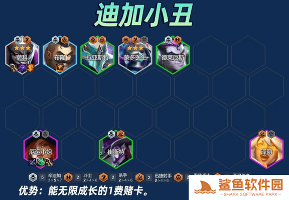 云顶之弈s14辛迪加小丑阵容围绕1费赌卡萨科(小丑)打造,核心玩法类似 S13 赌小炮,通过杀人叠加攻击力实现无限成长,后期搭配女枪作为副 C,利用大范围破甲补足输出,舍弃弱势杀手羁绊,主打辛迪加体系