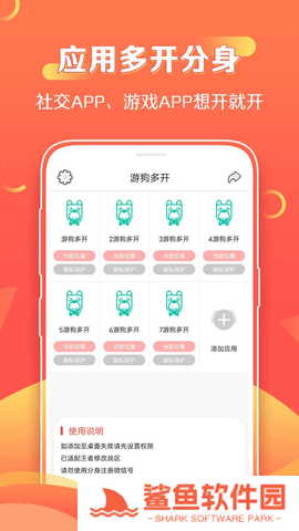 游狗多开介绍1、创建多个应用克隆,每个克隆独立运行,互不影响。