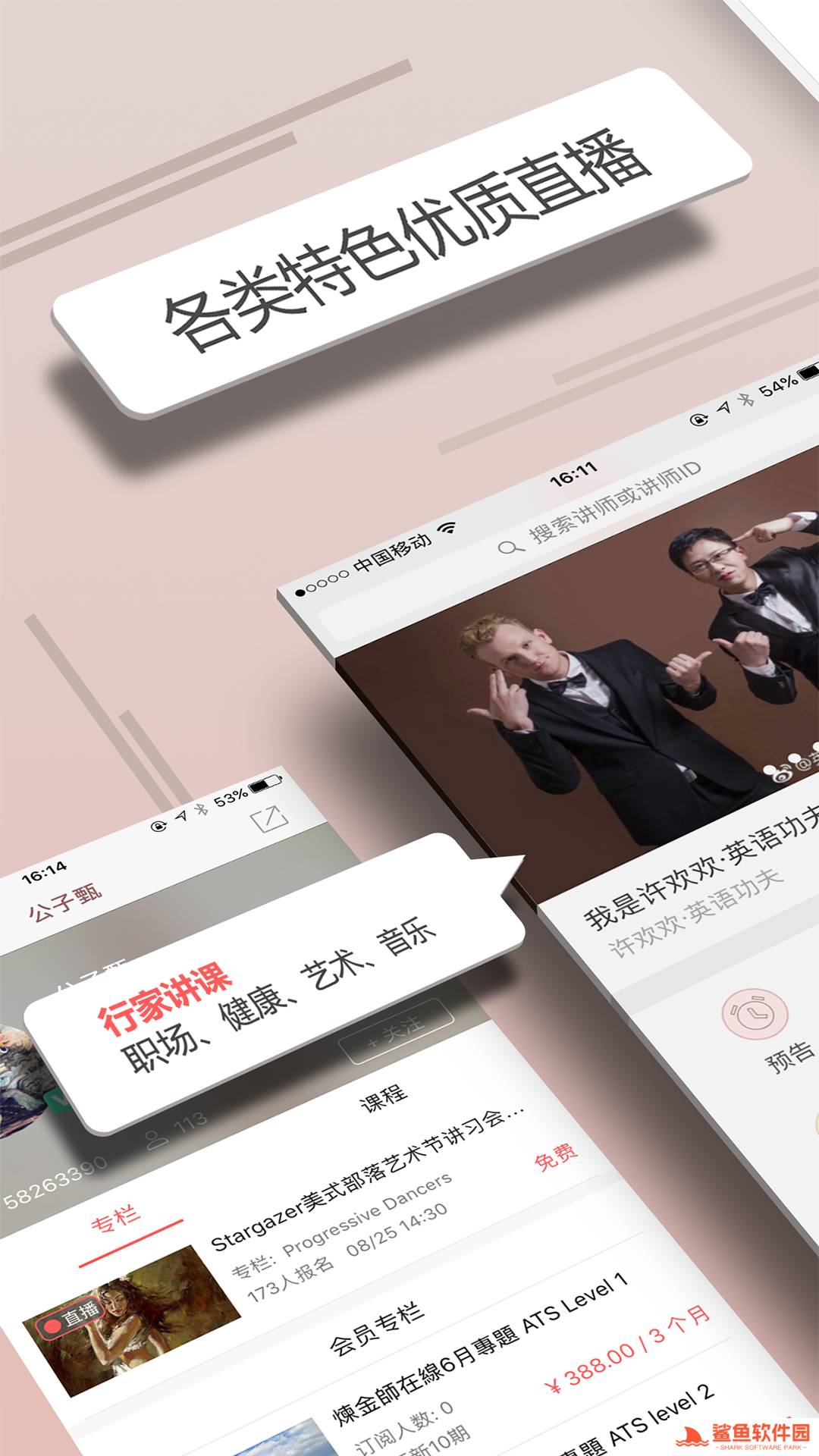 人人讲介绍1.职场干货:涵盖金融地产、企业培训、传播学、创新思维教学,营销管理等,多领域职场大牛经验分享