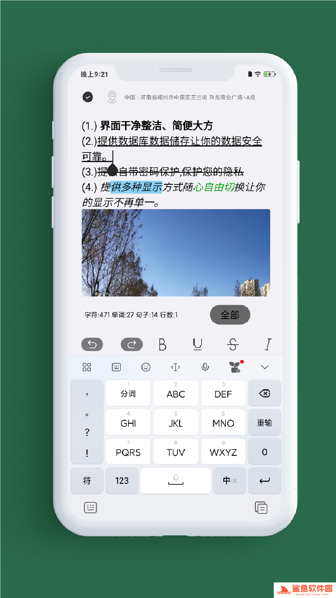 小记事备忘录介绍可以去设置加粗、对齐等,更有密码锁功能,统统都能记录下来哟,用户可以很便捷轻松的在小记事备忘录里记录自己的灵感以及一些重要的笔记。