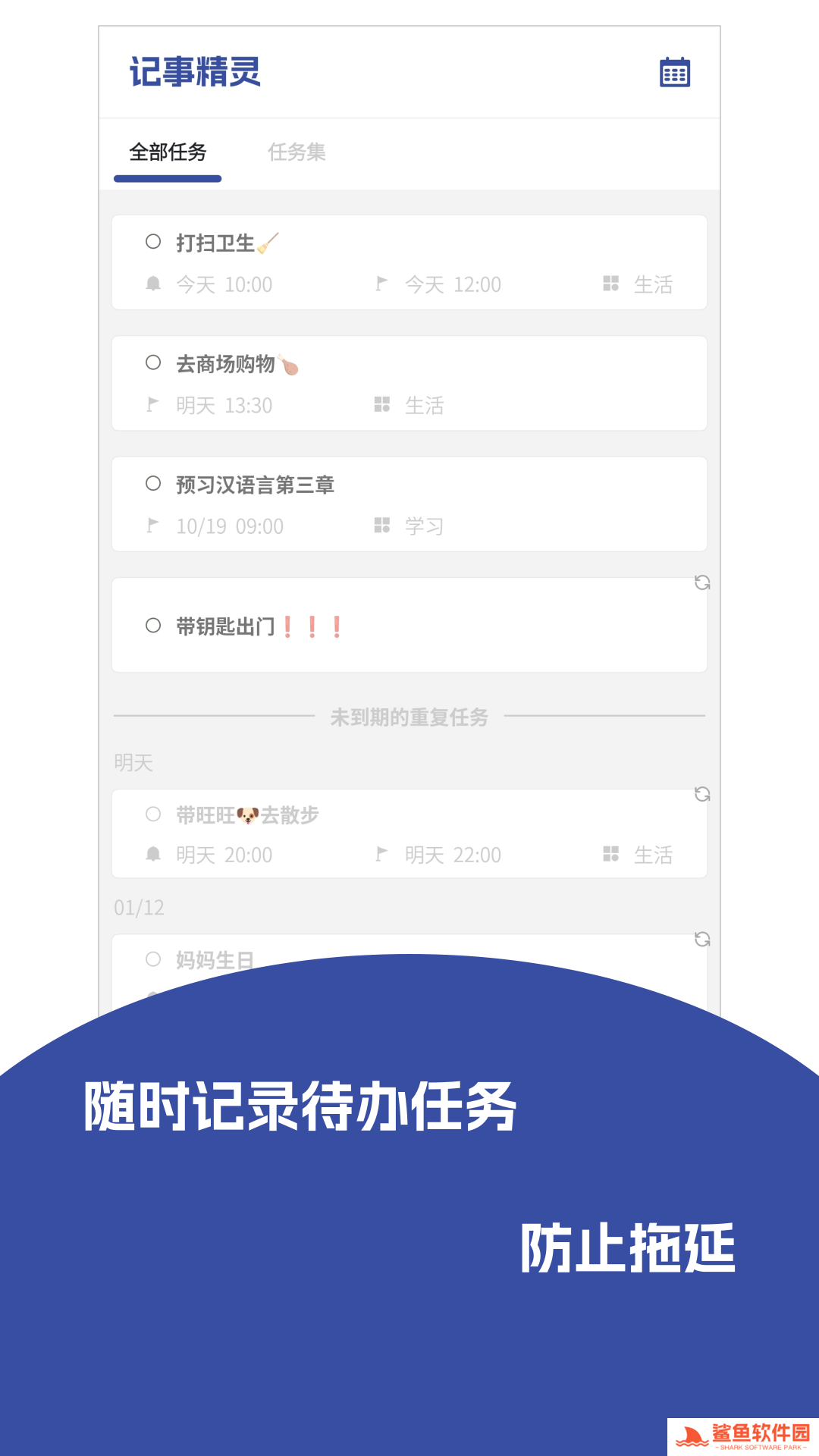 记事精灵特色提供待办事项功能,支持对便签进行分类管理;