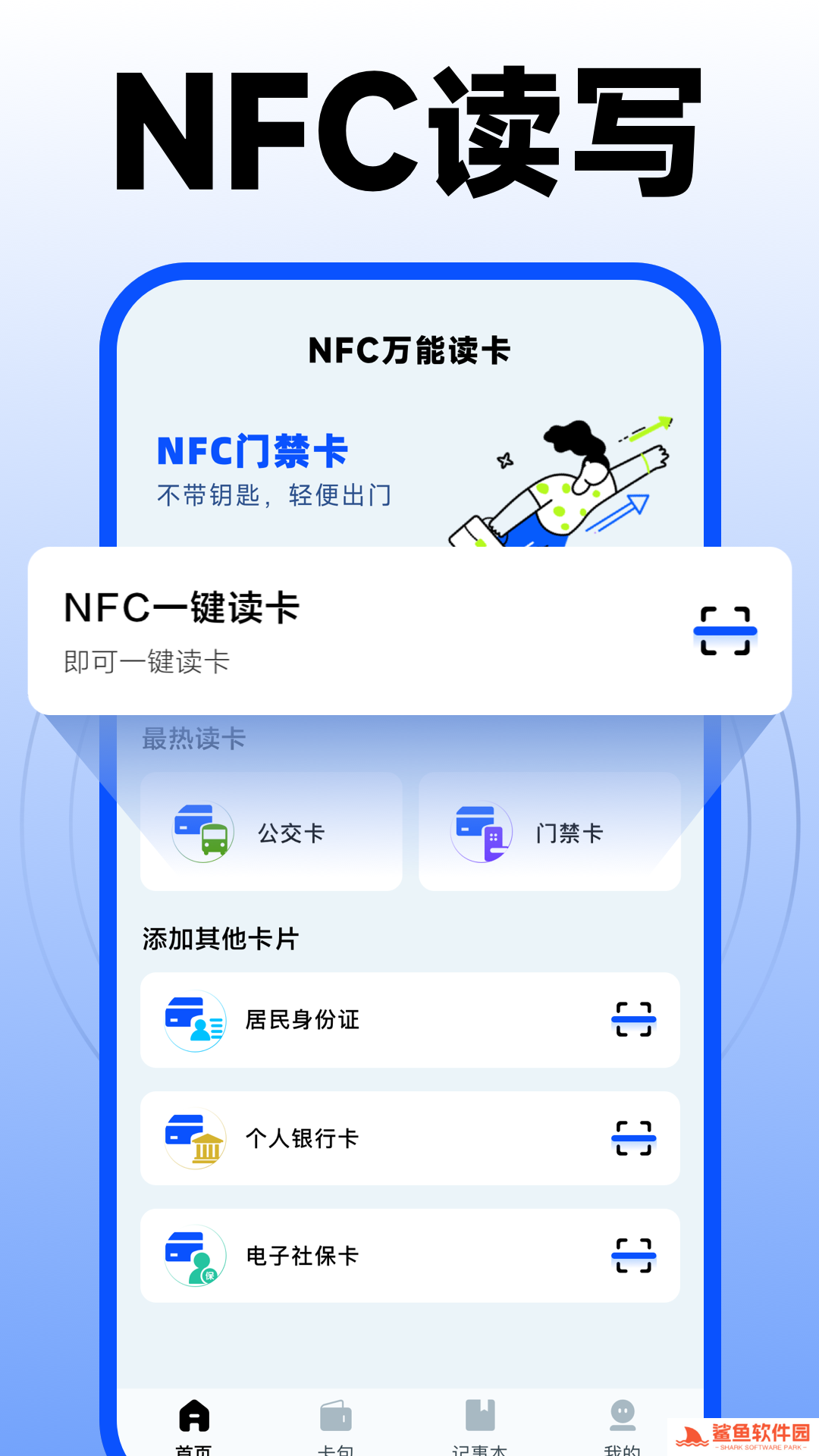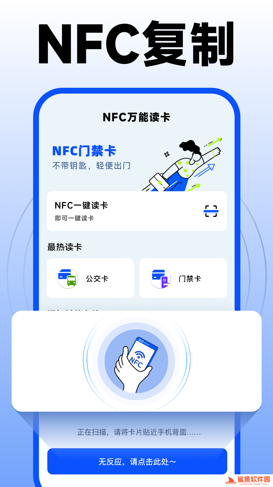 复制门禁卡:支持将NFC门禁卡的信息复制到手机或其他空白NFC标签上,方便携带和使用。