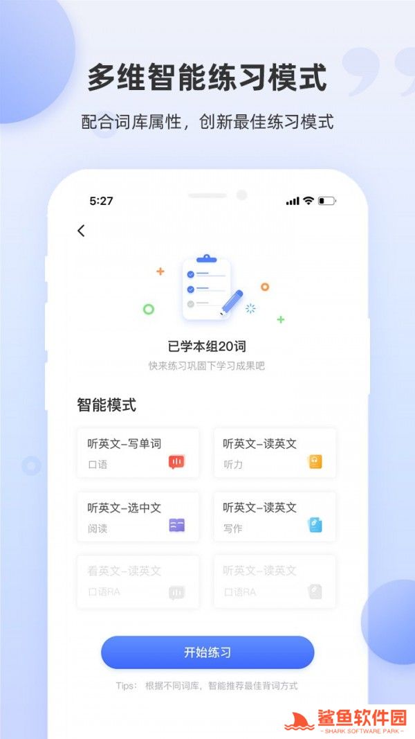 智能练习:配合词库属性,智能推荐最佳的练习模式