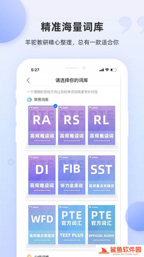 点击词库,选择适合自己的学习词库,例如常用词汇、官方词汇或分级词汇等
