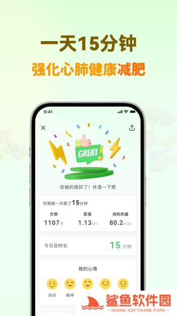 详细记录跑步时长、步频、速度和卡路里消耗等运动数据,并通过图表直观展示,帮助用户清晰掌握运动进度和效果。