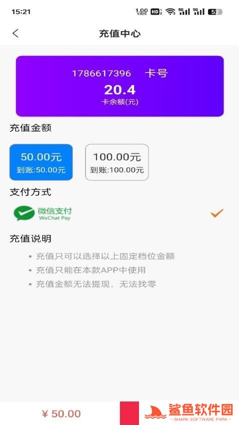 为用户提供了线上的充值中心,对自己的卡号余额可以在线充值。