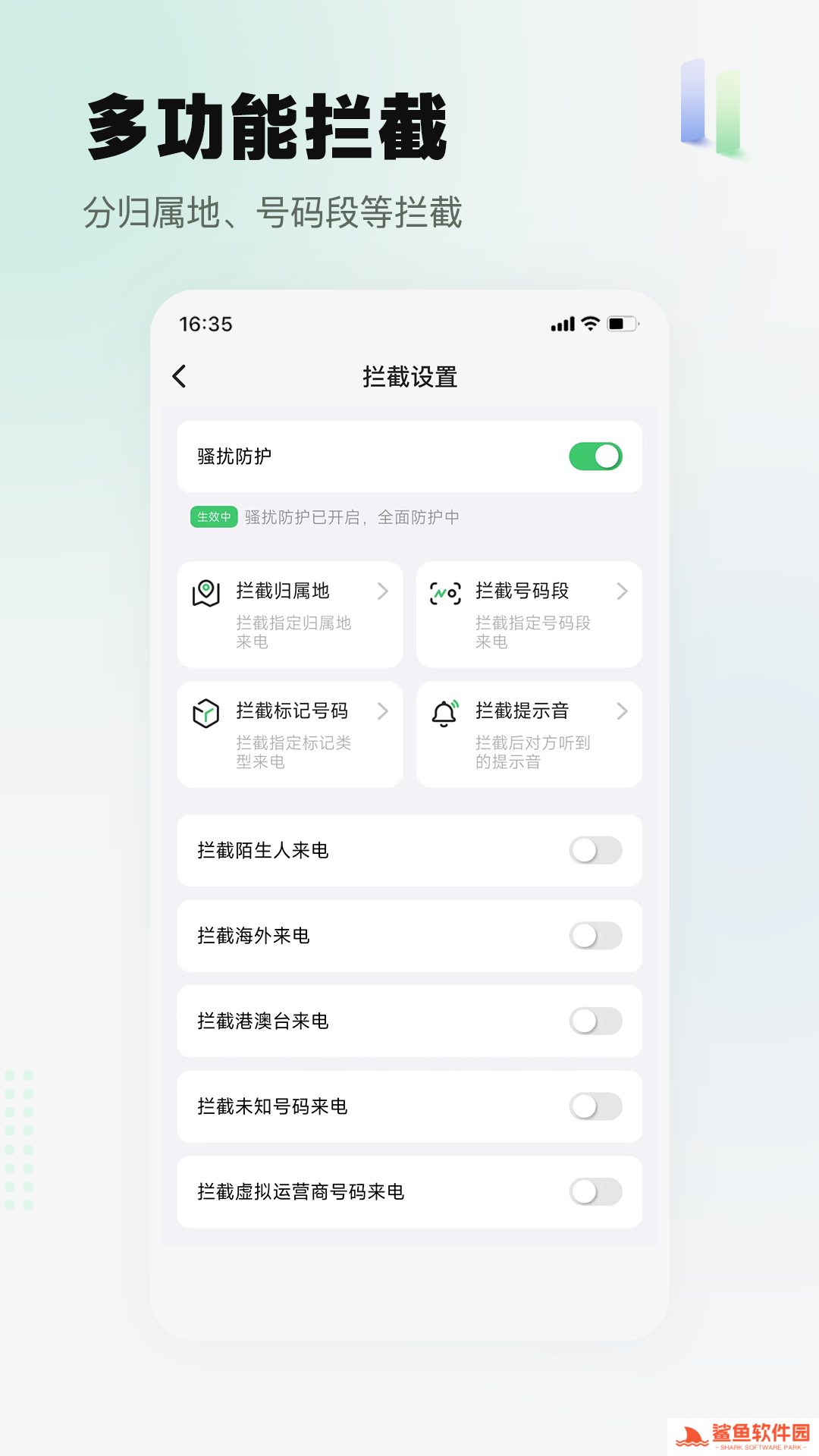 来电识别:当接到陌生号码来电时,即时显示是否为已知骚扰号码。