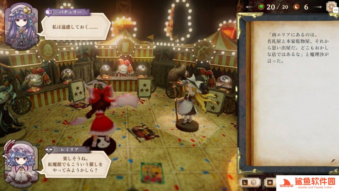 蕾米莉亚、芙兰朵露、咲夜、帕秋莉等4人会从书外观察灵梦的冒险过程,并针对书中发展恣意发表意见。