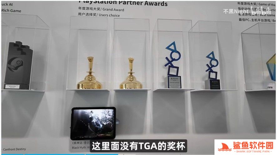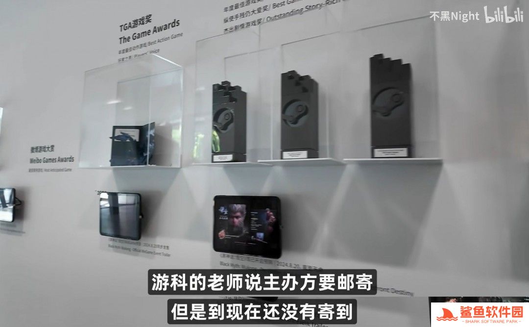 UP主“不黑Night”表示:“旁边走廊里是各种大奖的陈列,然而里面没有TGA的奖杯,只用了一个纸卡代替。游科的老师说主办方要邮寄,但是到现在还没有寄到。”