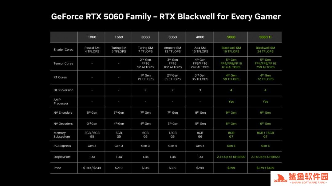 NVIDIA表示,RTX 5060系列显卡采用与50系列其他GPU相同的硬件创新,利用最新的Shader Core、Tensor Core、Ray Tracing Core和超快的GDDR7显存,打造出色的游戏体验。