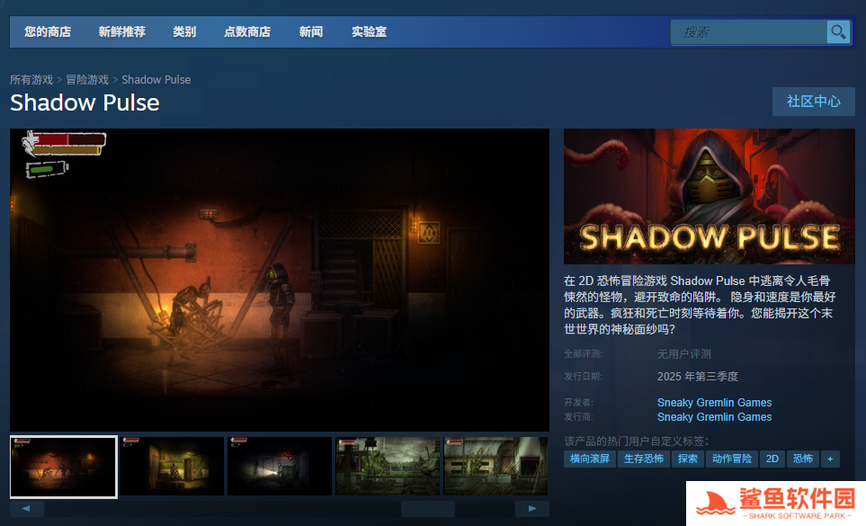 Steam平台需要先安装Steam平台,之后注册一个账号登录,然后搜索“Shadow Pulse”进入商店购买页面。