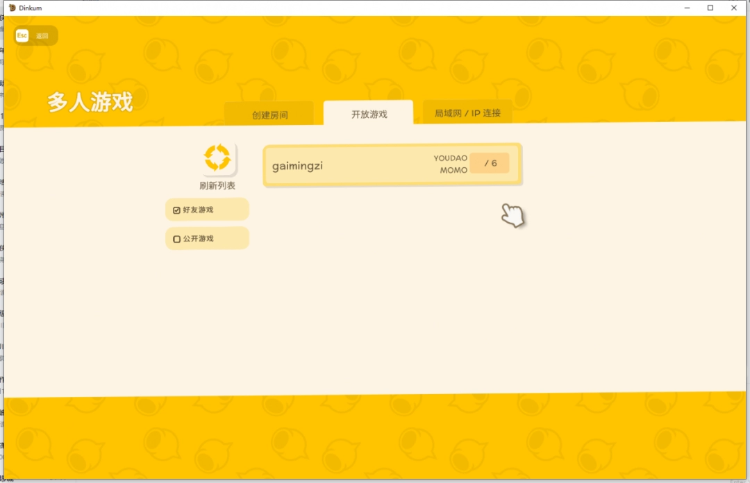 2:看图,使用局域网创建游戏或者加入别人的房间游戏。