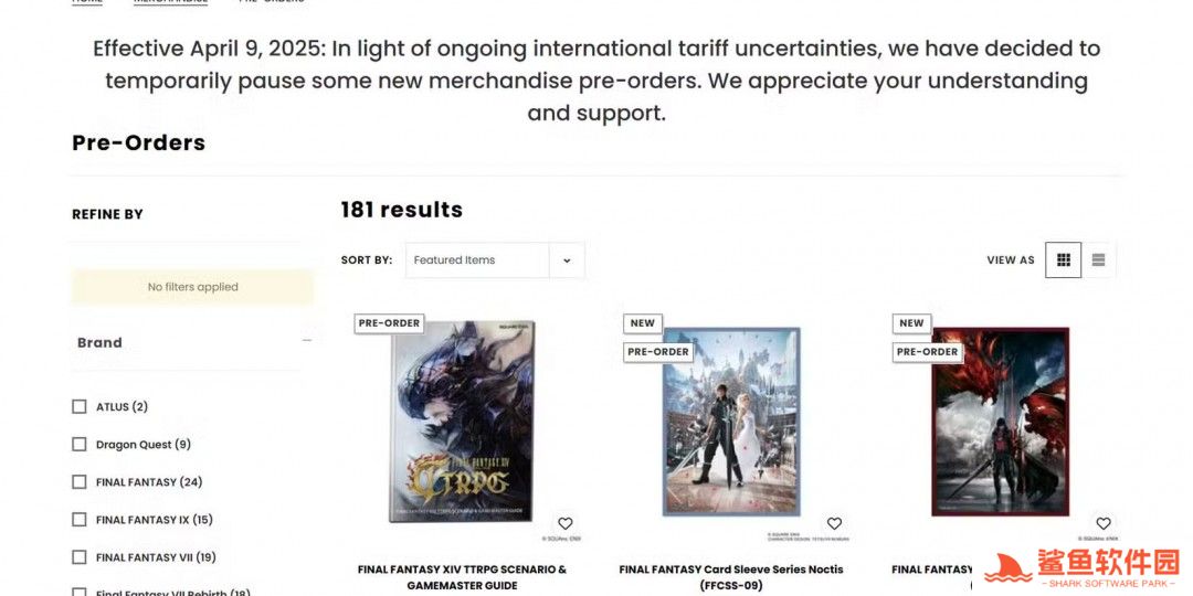 目前这家日本公司仅暂停了周边商品的预售,游戏产品未受影响。截至4月16日,仍有181种周边商品可正常预购。经GameRant核实,美加两国预购页面内容完全一致,意味着加拿大消费者可能同样受限。官方尚未明确此次暂停将持续多久,但鉴于公司声明将“经济不确定性”列为主因,此次调整或至少延续至2025年7月中旬——届时华盛顿三个月的关税暂缓期结束,日本进口商品关税政策或将明朗化。