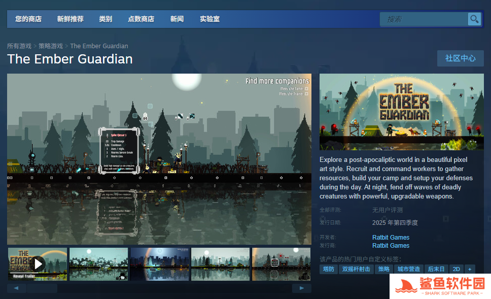 《The Ember Guardian》是一款由Ratbit Games工作室开发的2D横版战略射击游戏,而这款游戏想要下载还是比较麻烦的,下载的第一步就是安装Steam平台,然后注册账号登录,并且搜索“The Ember Guardian”,然后点击购买,之后点马上开玩即可。