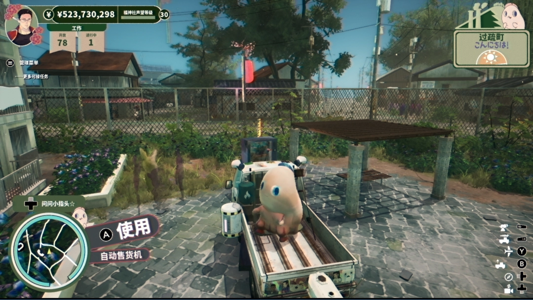 《达愿福神社》中的寻宝售货机是游戏里很重要的东西,玩家用售货机可以做很多事情,首先是第一个紫色售货机,就在居民区的公寓附近,在公寓的院子里就可以看到一个紫色售货机,找到还是比较简单的。