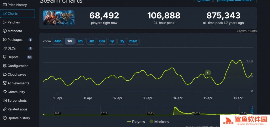 如上图所示,《博德之门3》Steam 24小时在线峰值达到了10.6万,当前在线接近7万人。在这次更新前,该作在Steam上的在线大约为5万人。