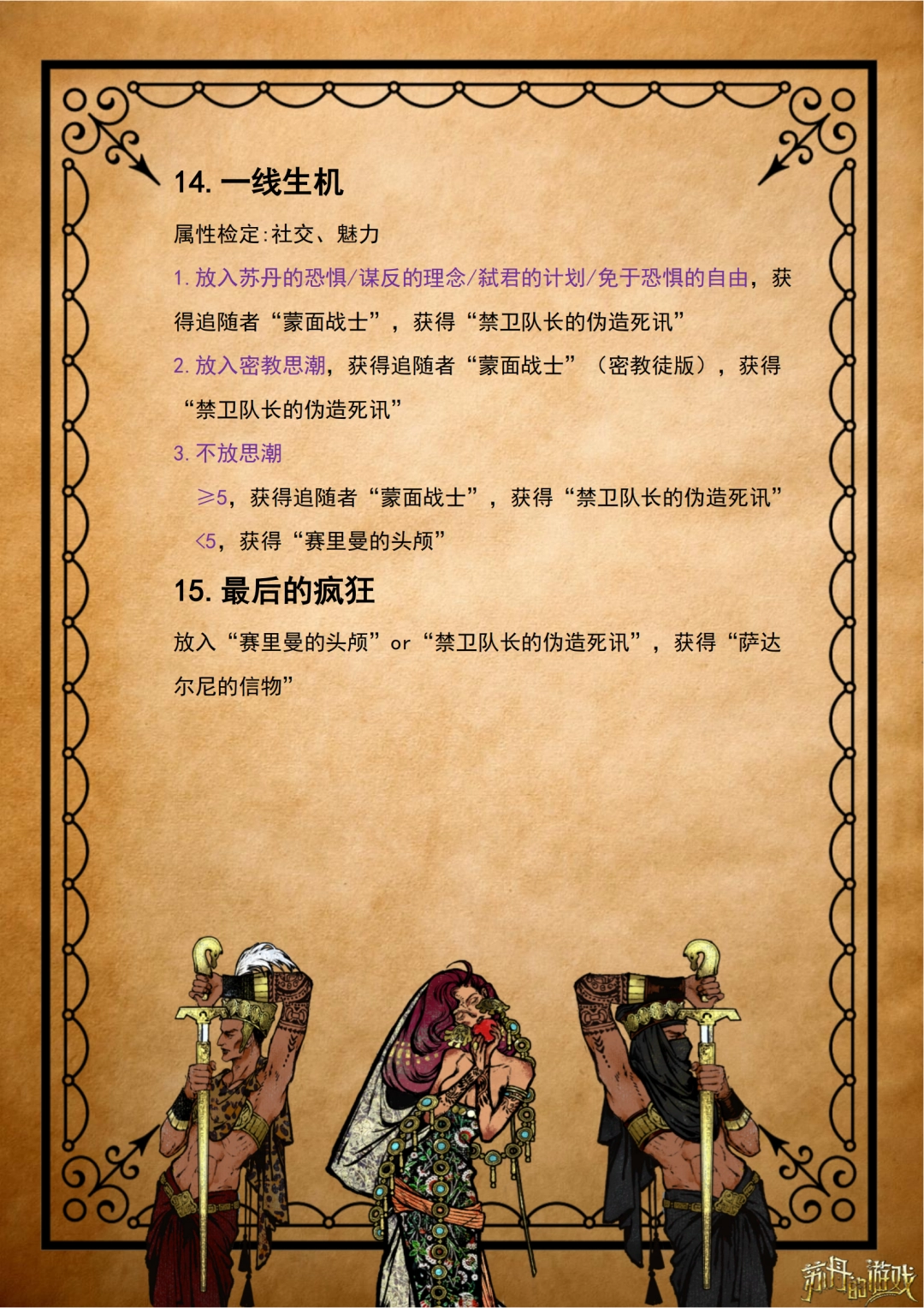 (2)塞里曼线,留着不杀是最好的,苏丹的四大近卫最好入队的一个,顶级恋爱脑。