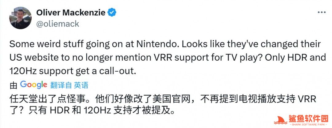 数毛社Digital Foundry记者Oliver Mackenzie指出,任天堂部分地区网站上已删除了关于VRR的提及。截至撰稿时,加拿大、美国和日本官网上都已删除了关于VRR的提及。目前只剩下欧洲官网还挂着,但任天堂可能正在将其从所有版本的网站上删除,并且尚未更新其欧洲官网。