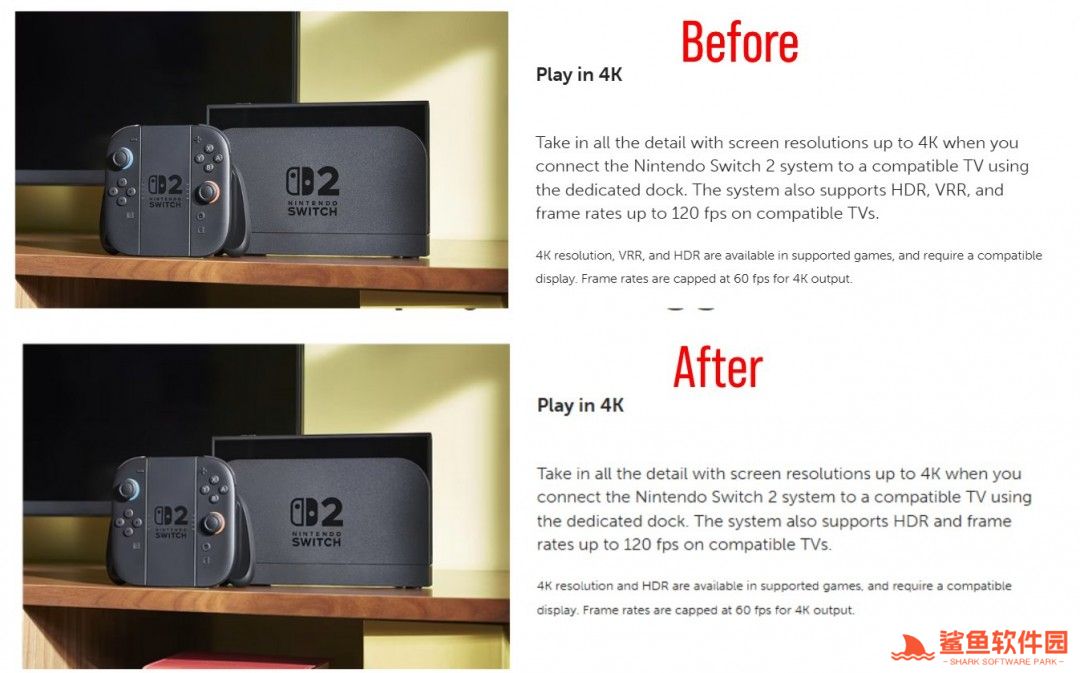 任天堂已从Switch 2官网上删除了多处提及支持VRR(可变刷新率)的描述。