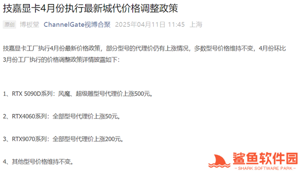 据博板堂透露,技嘉显卡工厂已执行4月份最新价格政策,部分NVIDIA和AMD显卡型号的代理价有所上涨,多数型号价格维持不变。具体来看,技嘉此次价格调整涉及以下几款显卡:RTX 5090D系列:风魔、超