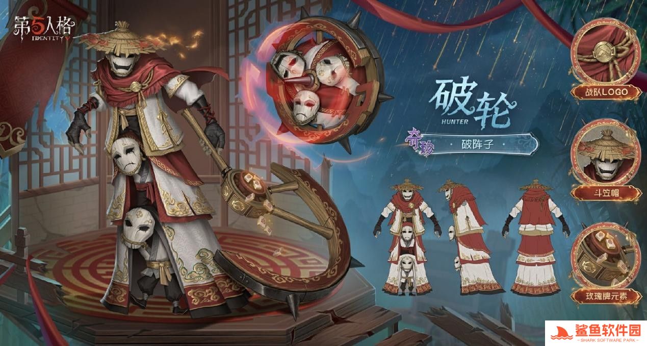 【奇珍时装】破轮-破阵子,林间枫叶擦过头顶的斗笠,赤色披肩在风中猎猎飘荡,白色假面将真实的情绪掩藏,唯有金色的战队LOGO在胸口闪烁着光芒——他们仍蓄势待发,时刻做好准备。隐居的时光让技艺得到沉淀,巧手的工匠能实现一切设想,手中的法器纂刻着细腻的纹路,当木牛流马终于问世,所有人都知道这已成为破阵的关键。当他们齐心合力,身体与武器化为沉稳的巨轮,红色辉光勾勒出战队LOGO的轮廓,锐利的尖刺开辟一往无前的锋芒。