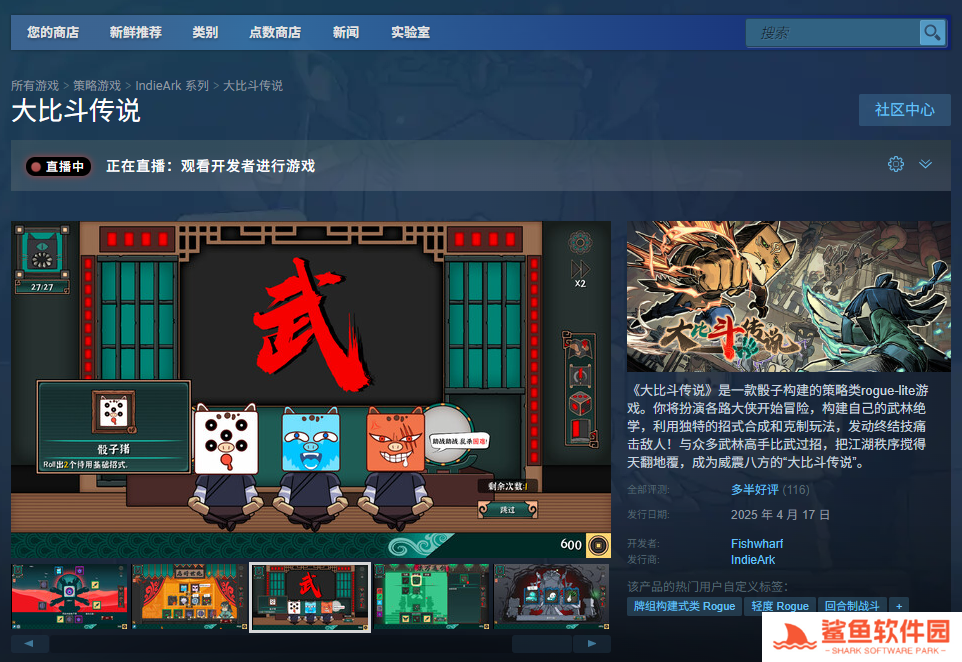 Steam平台需要先安装Steam平台,之后注册一个账号登录,然后搜索“**斗传说”进入商店购买页面。
